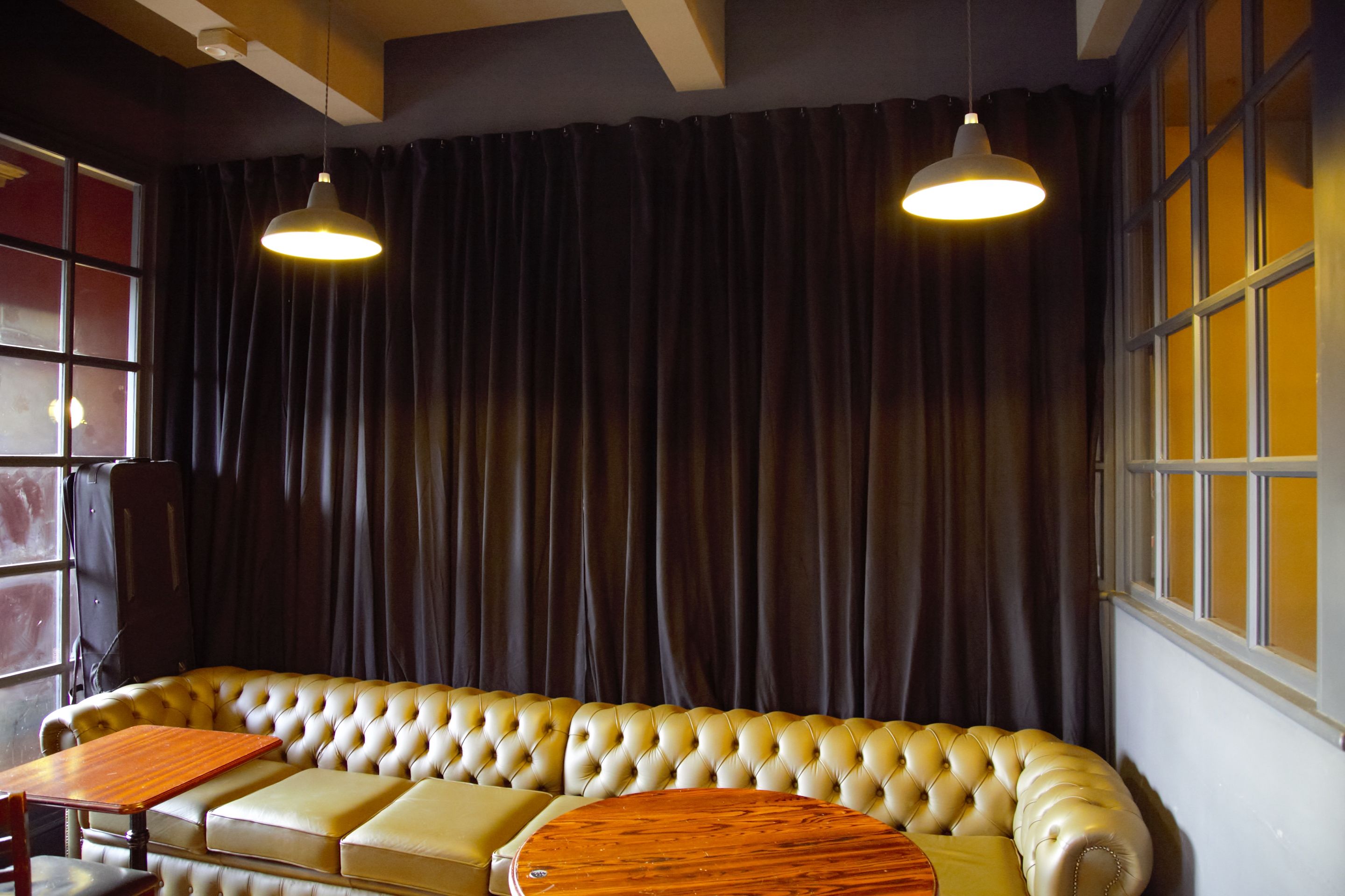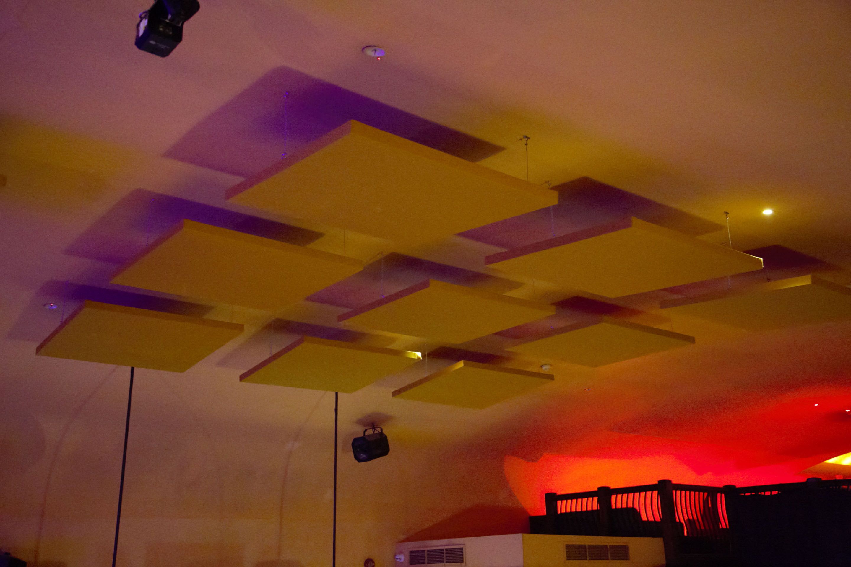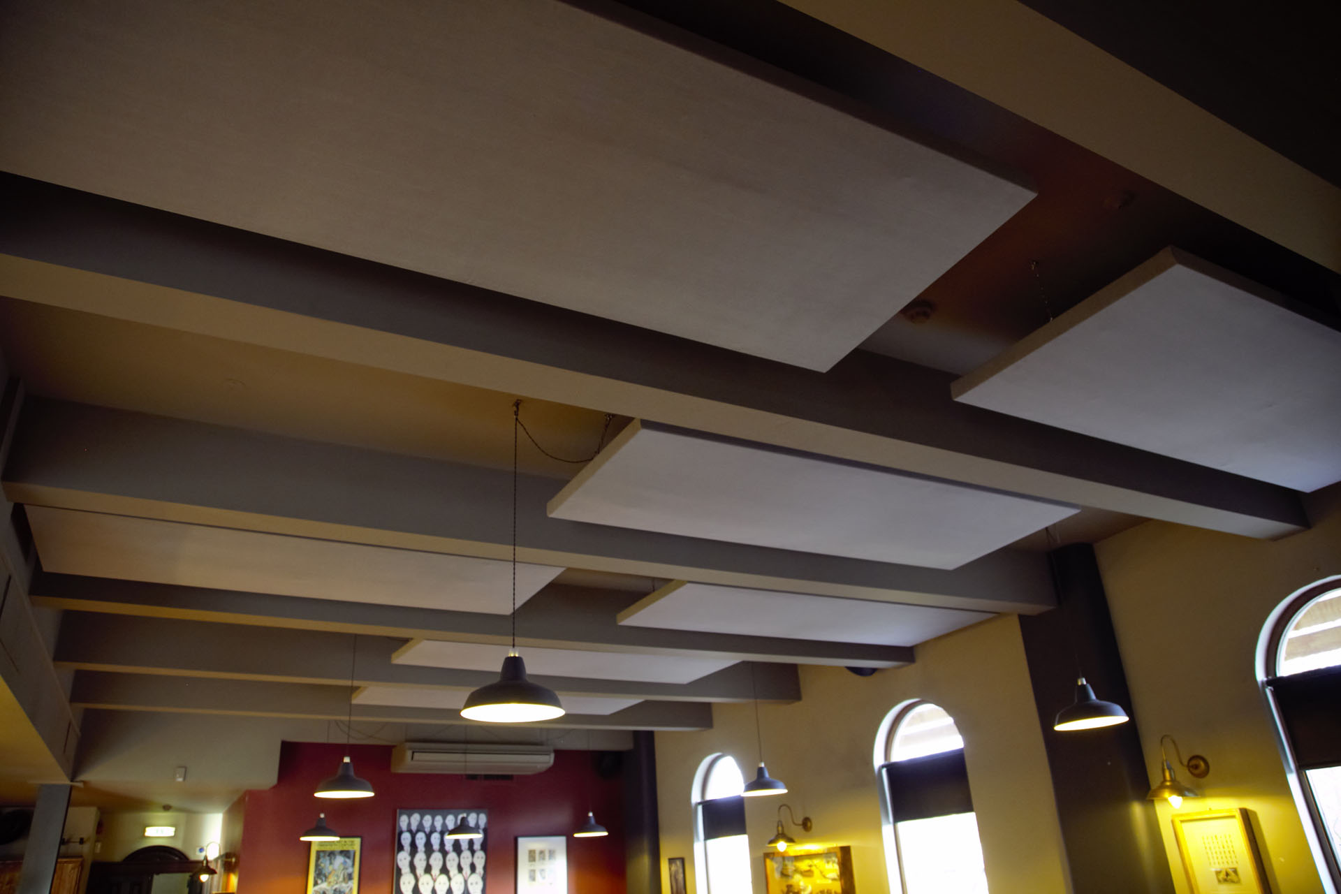 Bar and Music Venue. The sound during live acts and DJs was very harsh and loud due to the lack of absorbent surfaces. Apart from the curtains, all baffles are ceiling mounted, minimising visual impact.